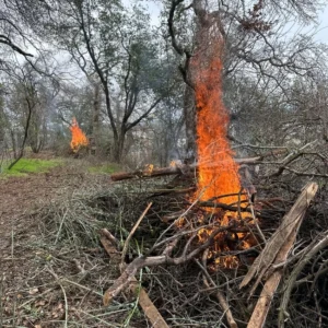 We create defensible space by removing dry brush, dead trees, and overgrown vegetation to reduce fire risks.